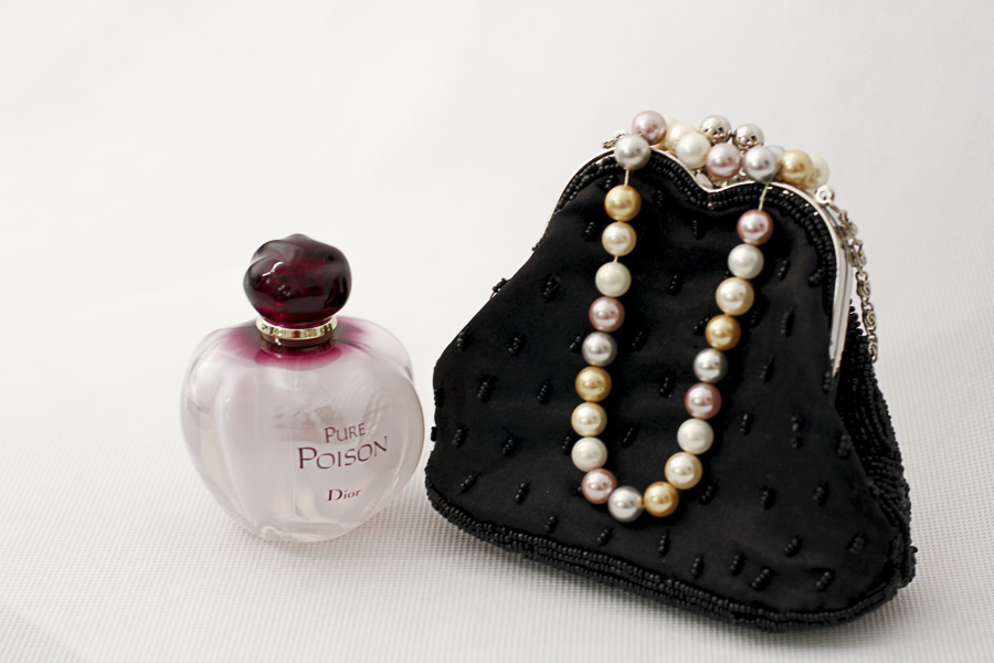 de pérolas, véus, echarpes, cintos, bolsas vintage e scarpins são os